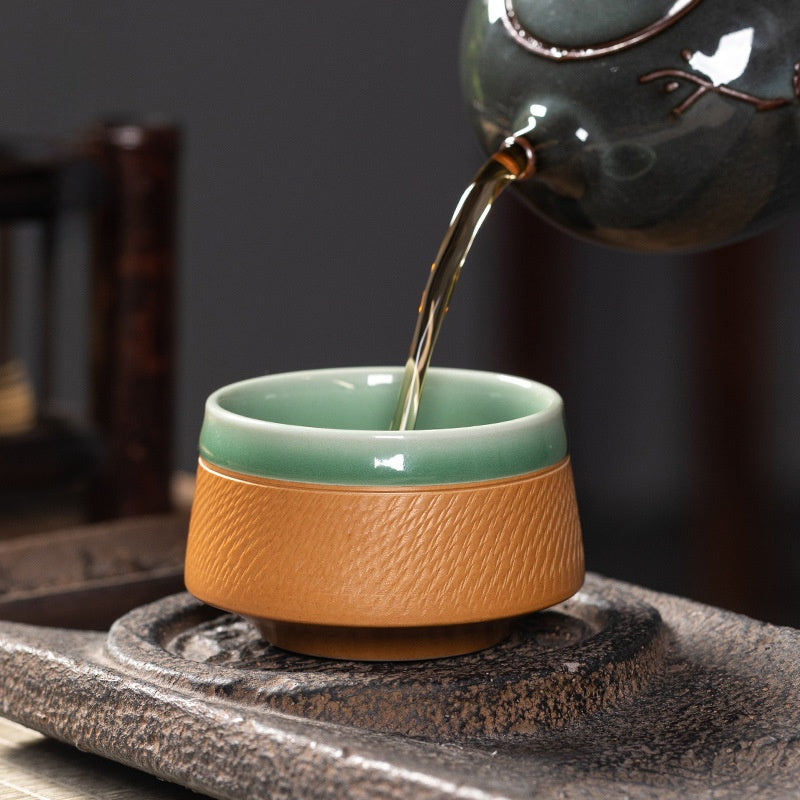 Longquan celadon, handmade jumping knife cup, meditation cup, tea set, Collectibles, Master's Cup,Gift Box